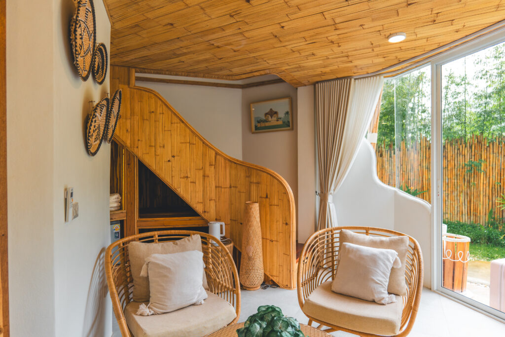 ห้องนี้สามารถพักได้ 2-3 คน ชั้นล่างเปิดประตูเข้าไปจะเป็นห้องนั่งเล่น
